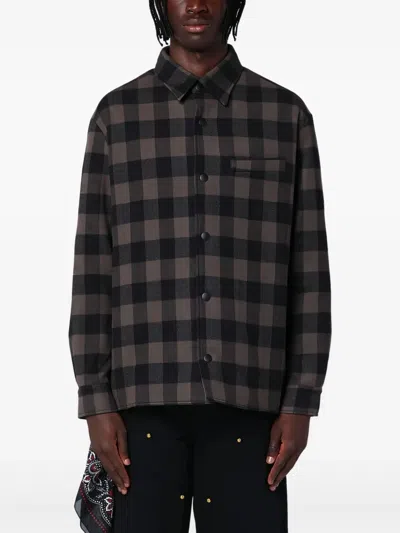 Charcoal Grey Wool And Cashmere Overshirt In Brown