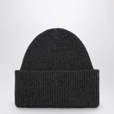 Anthracite Grey Cashmere Blend Beanie In Black