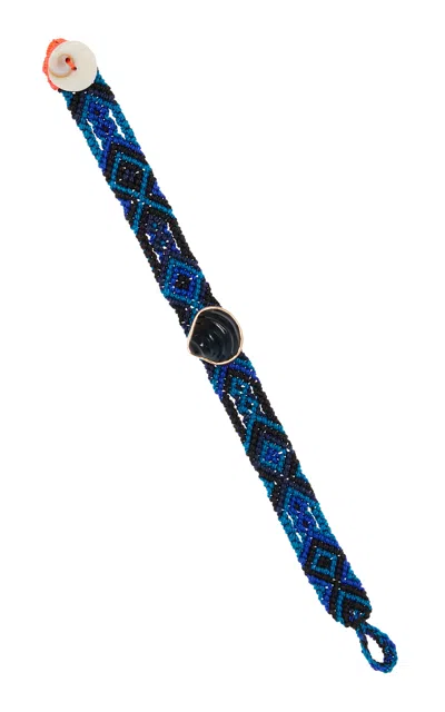 Cowry Bead Baguette Blue Sapphire Surf Cord Bracelet In Lapis Lazuli & Green Paracord