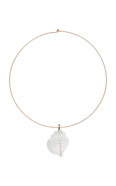 18k Yellow Gold Rose Quartz Cowry Shell Necklace In Pink