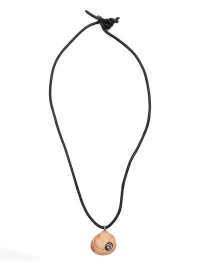 18k Rose Gold Diamond Cowrie Shell Necklace In Black