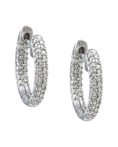 Silver 0.09 Ct. Tw. Diamond Small Hug Hoops In Metallic