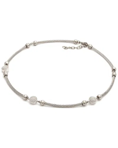 Silver & Steel 0.05 Ct. Tw. Diamond Station Necklace