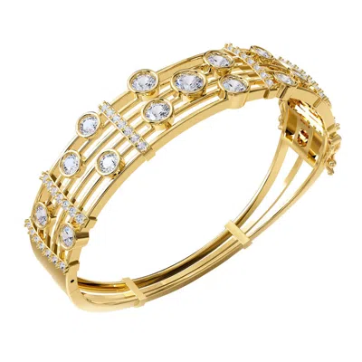 14k Yellow Gold 4.50 Carat Round Lab Grown Diamond Bangle Bracelet 7" Vvs-vs