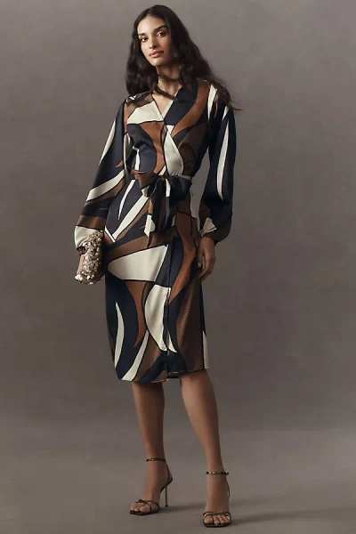 Lala Long-sleeve Wrap Midi Dress In Orange