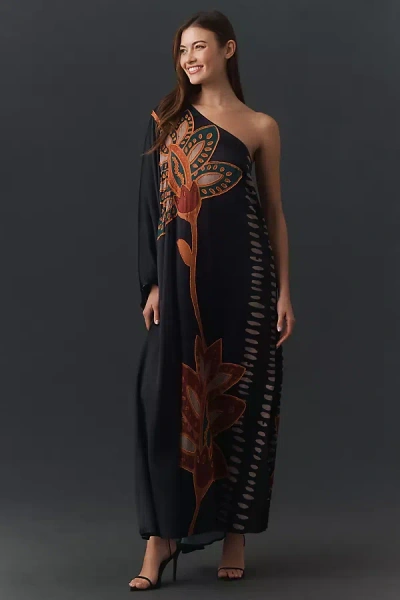 Satu Printed Long-sleeve One-shoulder Maxi Dress In Green