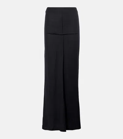 Floral-appliqué Velvet Maxi Skirt In Blue