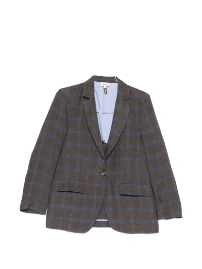 Check-pattern Single-breasted Blazer In Gray