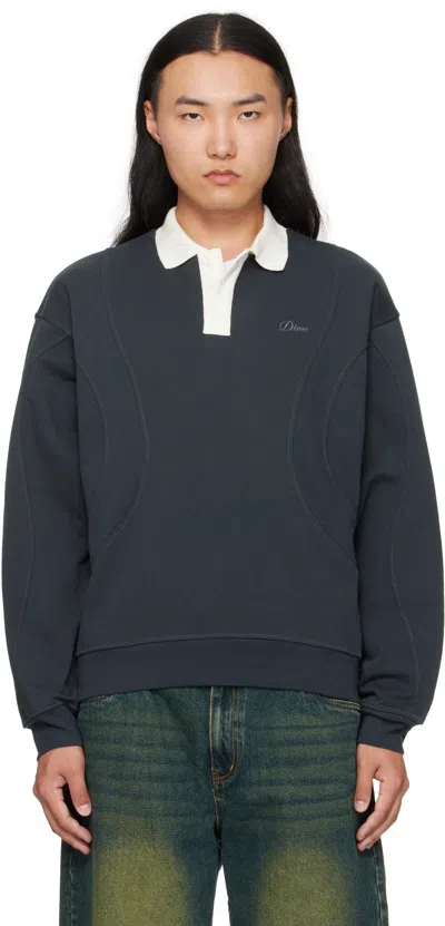 Navy French Terry Rugby Polo In Blue