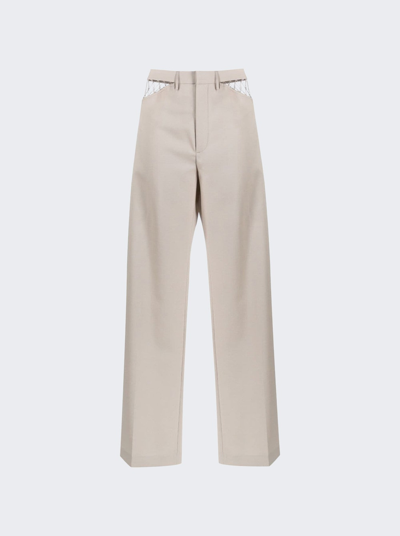 White Fishnet Tailored Trousers In Ivory/ivory