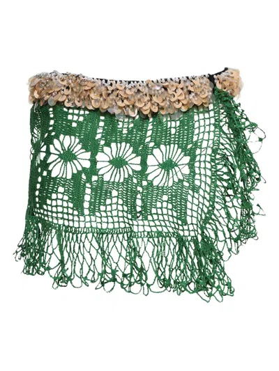 Spice Crystal Striped Crochet Knit Midi Skirt In Yellow