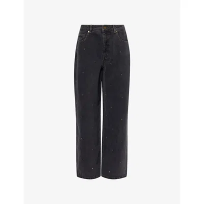 Womens Black Reagan Eyelet Wide-leg Denim Jeans