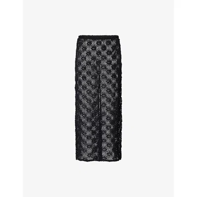 Womens Black Agnes Crochet Column Midi Skirt In Multi