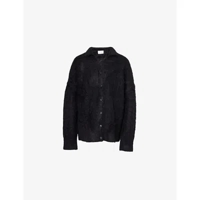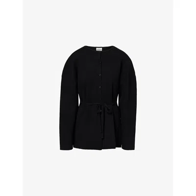 Womens Black Salma Polo-collar Stretch-wool Blend Cardigan