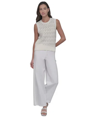 Women's Cotton Pointelle-knit Sleeveless Sweater In Ivy - Ivory