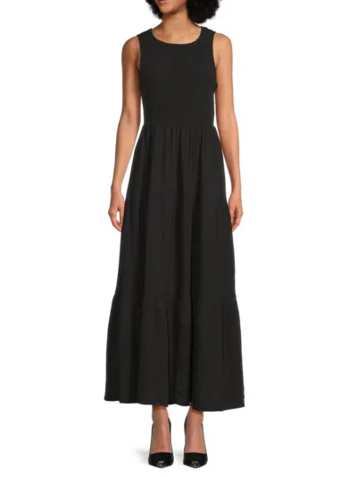 Dkny Women's Smocked Tiered Maxi Dress In Black