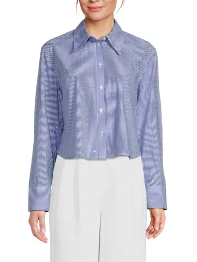 Dkny Women's Striped Studded Poplin Cropped Shirt In Bluebell