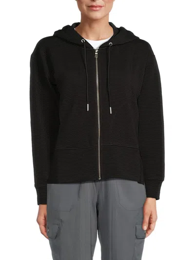 Women's Mixed Media Hooded Puffer Jacket In Black