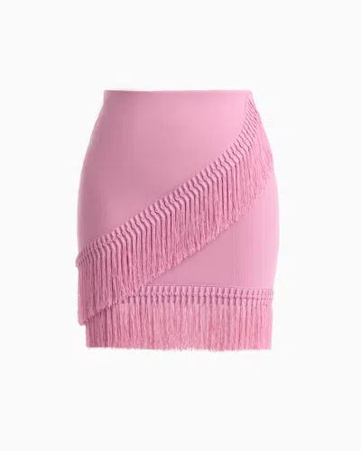 Kim Fringe Mini Skirt In Dusty Rose In Pink