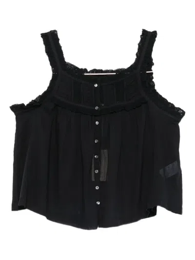 Idella Corded Lace-trimmed Ramie Blouse In Black