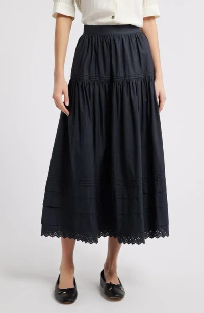 Sebastiane Broderie Anglaise-trimmed Organic Cotton-poplin Midi Skirt In White