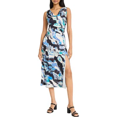 For Maggy Cowl Neck Sleeveless A-line Midi Dress In Blue