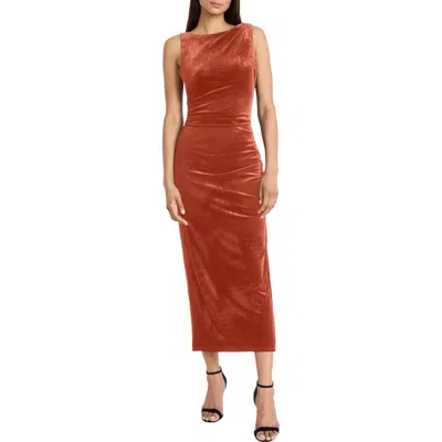 For Maggy Sleeveless Side Slit Velvet Midi Dress In Brown