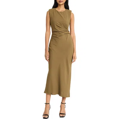 For Maggy Ruched Side Slit Tank Midi Dress In Brown