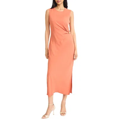 Sleeveless Ruched Waist Midi Dress In Orange