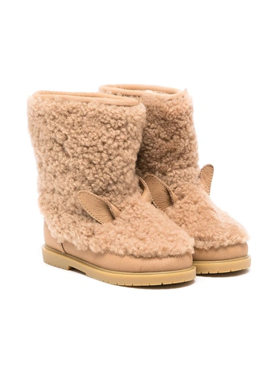 Brown Ankle Boots For Kids With Bear