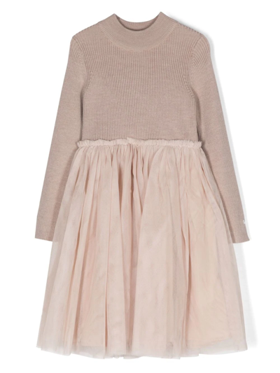 CECILLY荷叶边羊毛混纺薄纱连衣裙