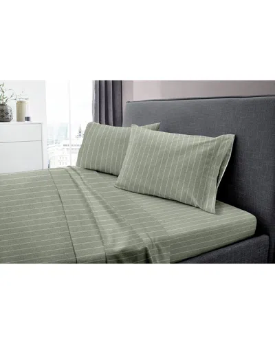 250 Thread Count Luxury German Flannel Hemstitch Sheet Set In Green