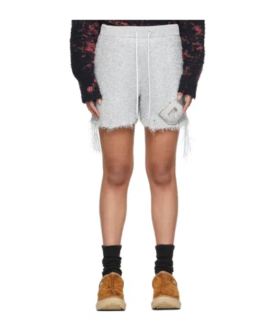 Metal Letter Elastic Waist Shorts In Gray