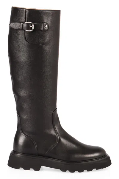 Buckle-detailed Leather Boots In Black