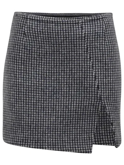 Grey/blue Wool Blend Checked Skirt In Multicolor
