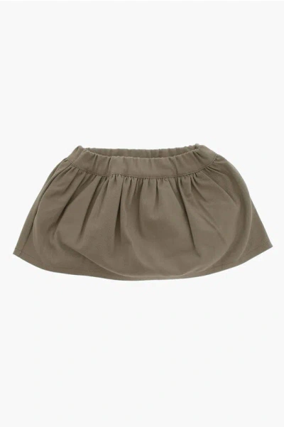 Stretch Cotton Skirt With Elastic Waistband In Neutral