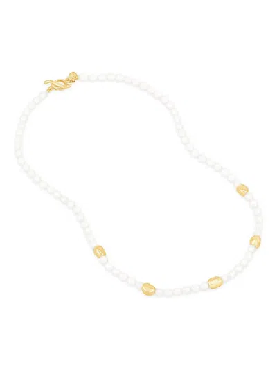 Women's Silver Turquoise Gemstone & Baroque Pearl Pebble Necklace