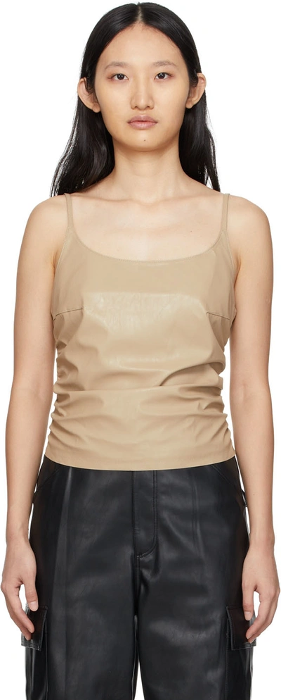 Beige Faux-leather Tank Top In Cream