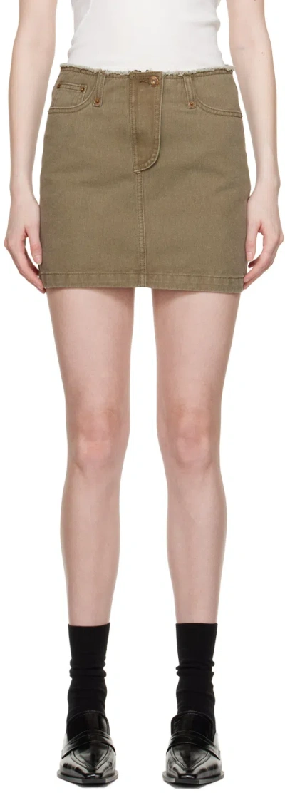 Khaki Zip-fly Denim Miniskirt