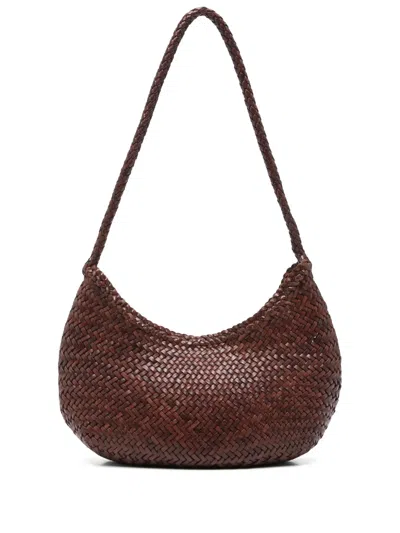 Gora Brown Mini Shoulder Bag With Two Top Handles And Interwoven Design In Leather Woman