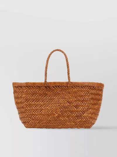 Bamboo Triple Jump Light Brown Tote Bag In Woven Leather Woman