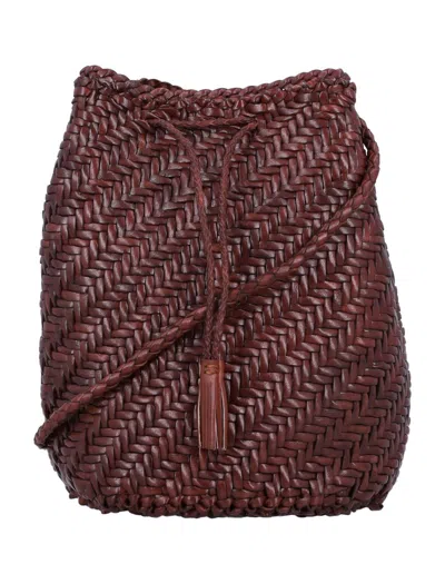 Pompom Double Jump Bucket Bag In Burgundy