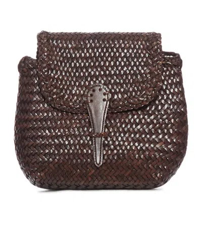 Gora Brown Mini Shoulder Bag With Two Top Handles And Interwoven Design In Leather Woman