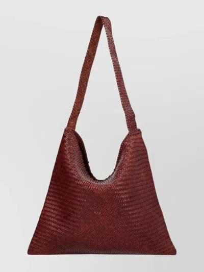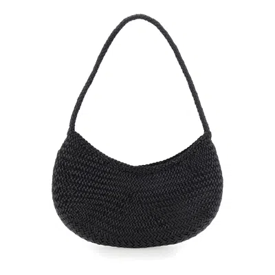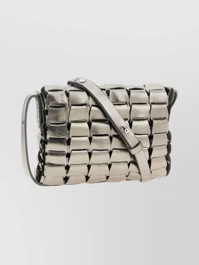 Black Crossbody Bag With Concealed Magnetic Closure And Interwoven Design In Leathe