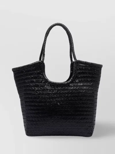 Woven Rectangular Tote Bag With Dual Handles In Black