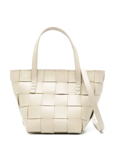 Mini Braided Leather Tote Bag - 18cm X 35cm In White