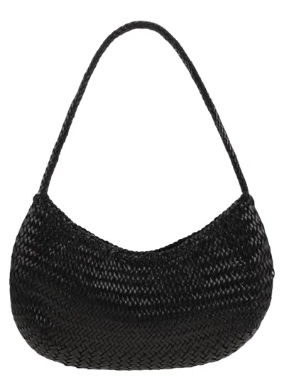 Bamboo Triple Jump Big Woven Leather Bag In Black