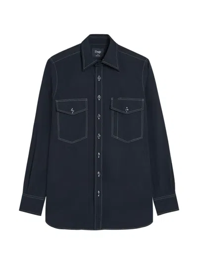 Drakes Mens Green Pencil Stripe Cotton Shirt In White