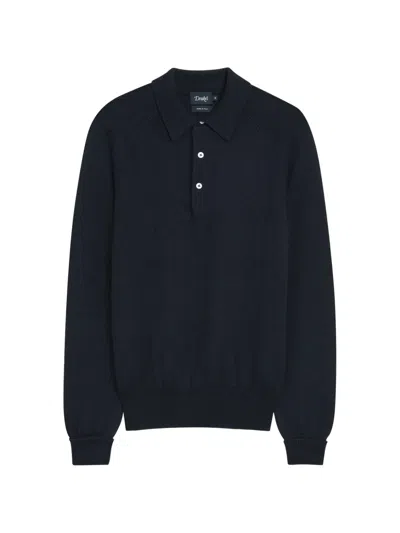Knitted Raglan-sleeve Polo Shirt In Blue