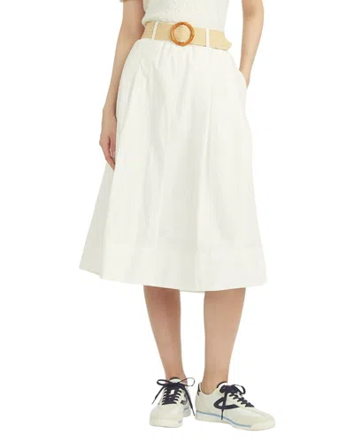Contrast Belt Linen Skirt In White